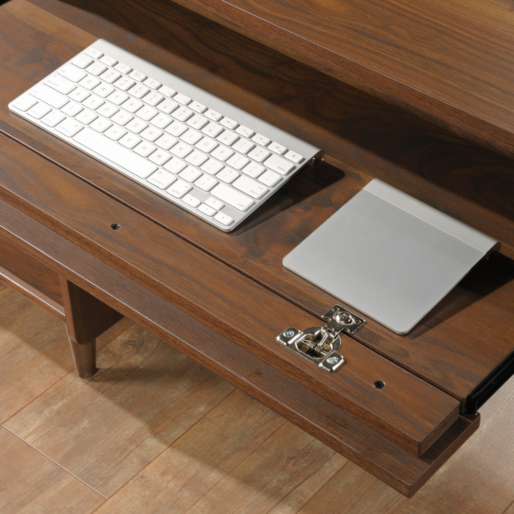 Teknik Office Clifton Place Executive Desk with Grand Walnut Effect Finish Flip Down Keyboard Shelf Two File Drawers and Solid Wooden Feet