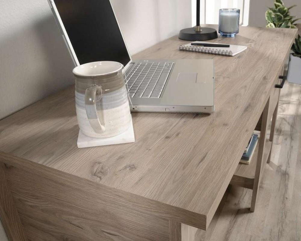 Teknik Office Summit Desk Laurel Oak Finish Two Drawers Tapered Leg Detail 360 Degree All Round Finish