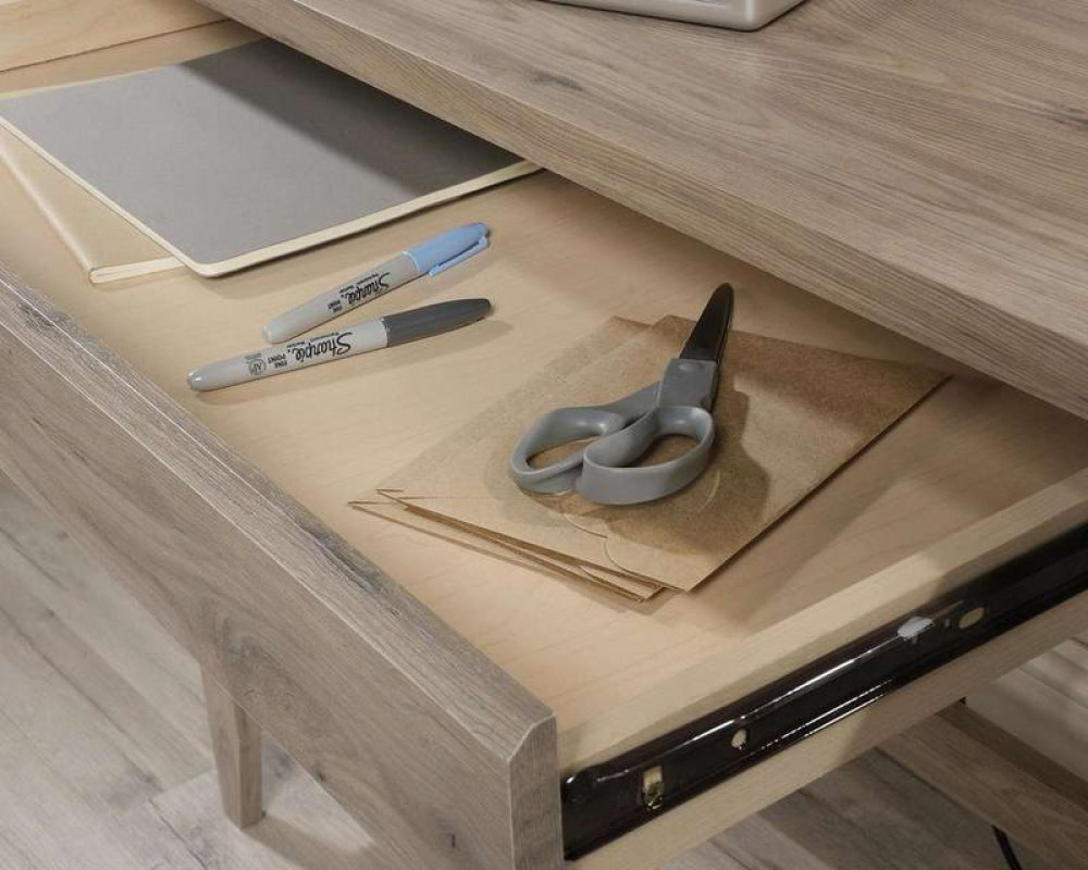 - Two drawers with metal runners and safety stops and filing drawer for letter sized hanging files