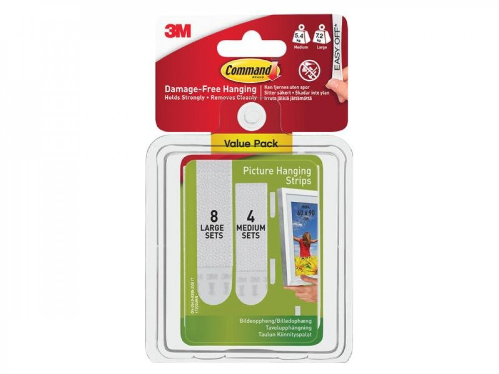 - Commandâ⢠Picture Hanging Strips Set, Medium & Large (Pack 12)