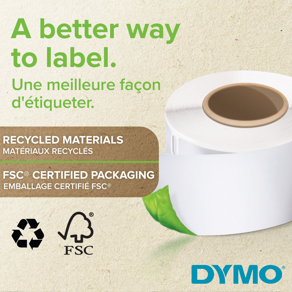 - Dymo LabelWriter packaging is made from mixed 80% recycled and FSC certified materials and the paper labels are FSC certified