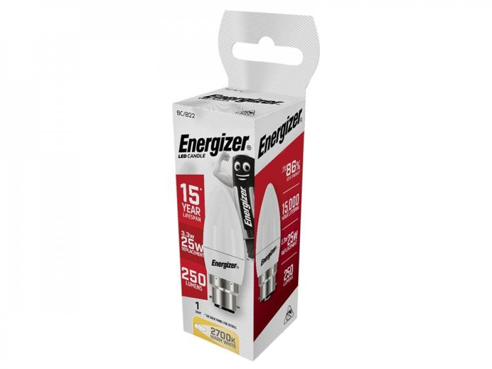 Energizer® LED BC (B22) Opal Candle Non-Dimmable Bulb, Warm White 250 lm 3.3W