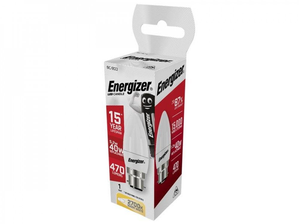 Energizer® LED BC (B22) Opal Candle Non-Dimmable Bulb, Warm White 470 lm 5.2W