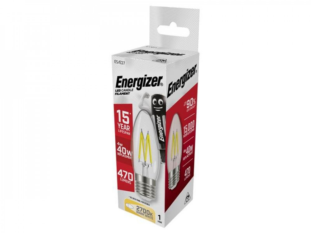 Energizer® LED ES (E27) Candle Filament Non-Dimmable Bulb, Warm White 470 lm 4W
