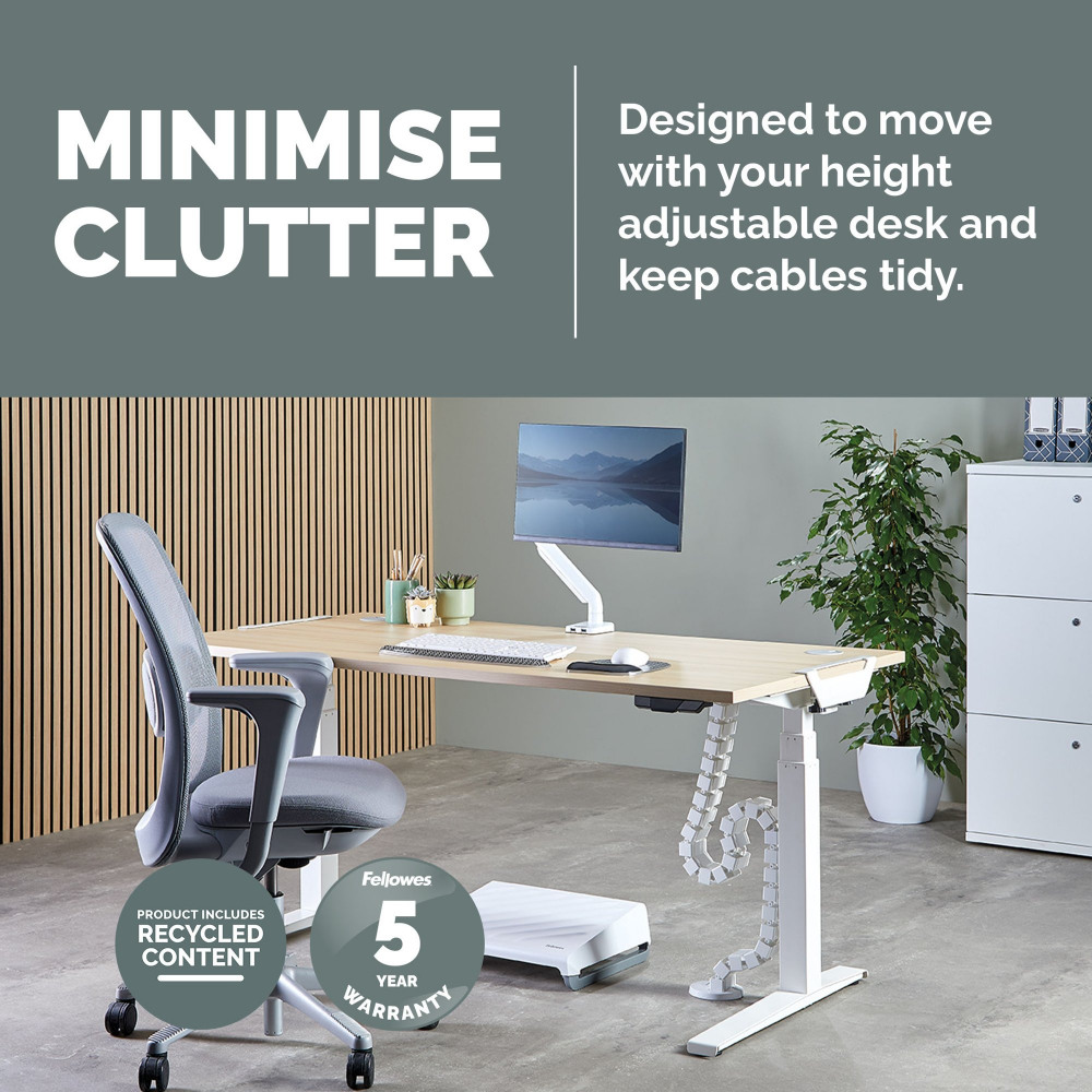 - KEEPS YOUR WORKSPACE CLEAN - Effortlessly organise and route your cables from the floor to your desktop with the Fellowes CableSpine, ensuring a clean, clutter-free workspace