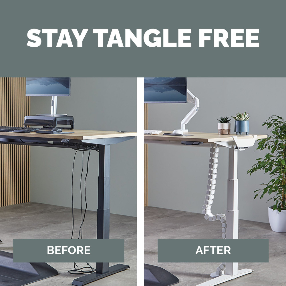 - PERFECT FOR HEIGHT ADJUSTABLE DESKS - The flexible cable spine adapts to height-adjustable desks (up to 130cm), moving seamlessly as the desk height changes