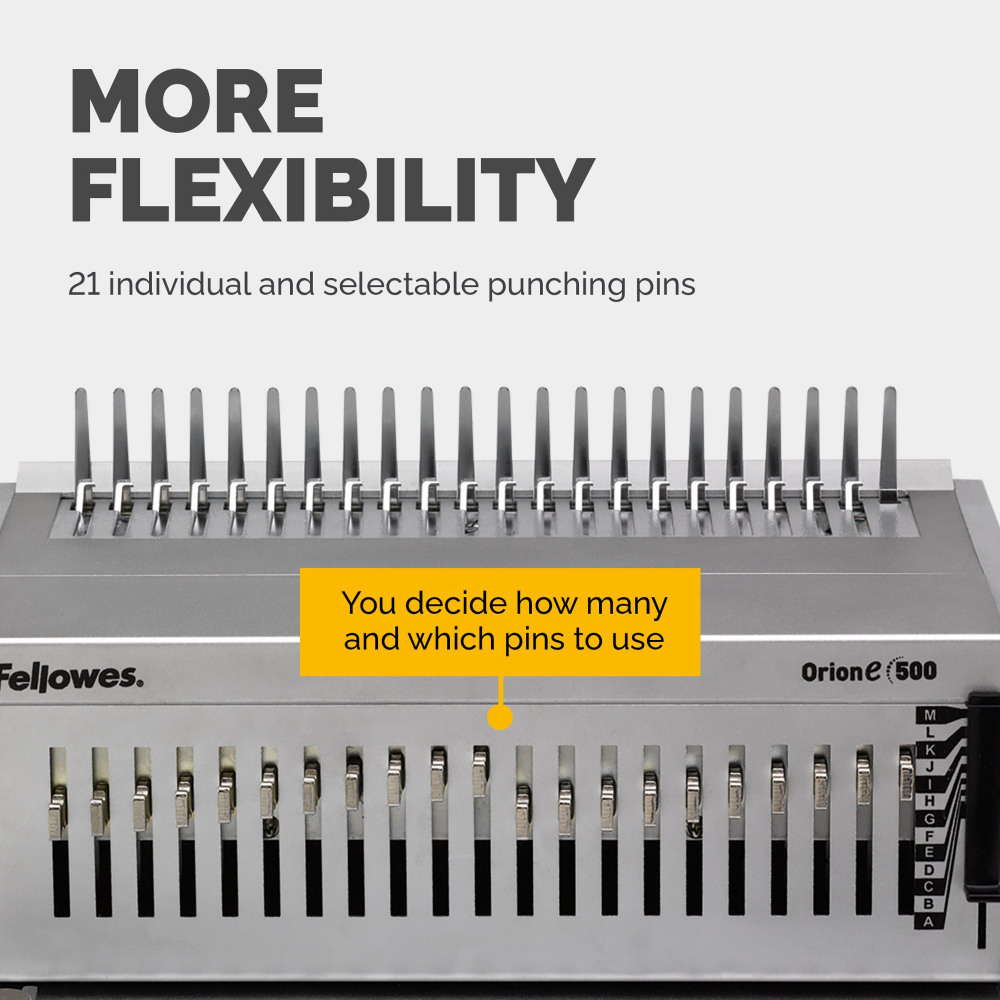- 30 sheet punch capacity, 500 sheet binding capacity with a maximum comb size of 51mm