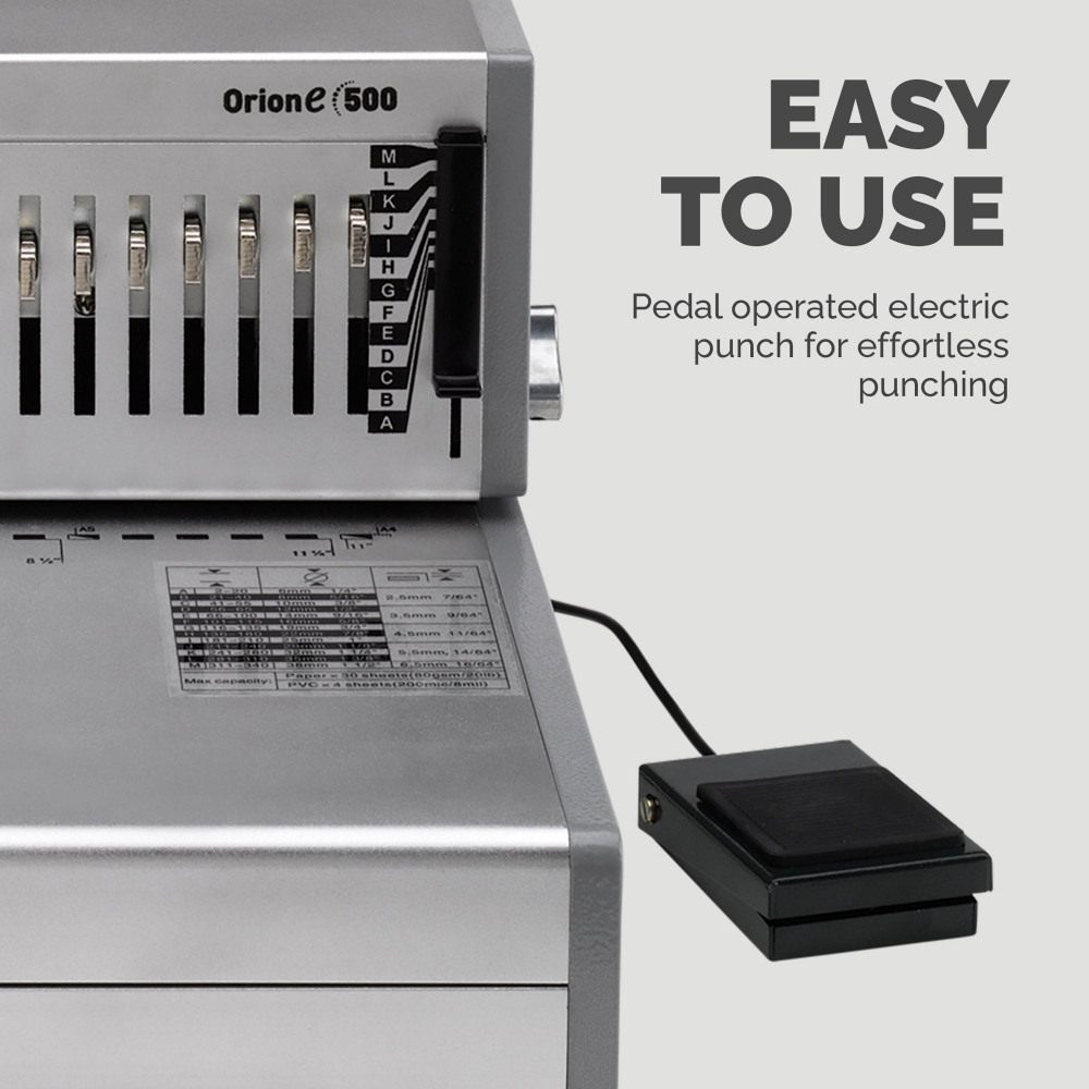 - Pedal operated electric punch for effortless punching of up to 30 sheets