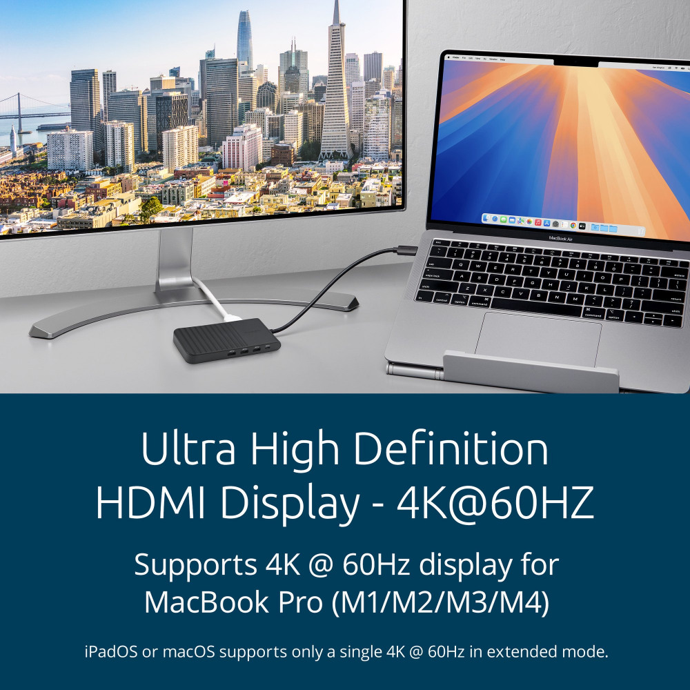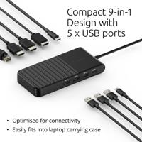3 x USB-A 3.2 Gen1 / 2 x HDMI v2.0 / 1 x USB-C 3.2 Gen1 / 1 x USB-C Pass Through Power / 1 x RJ-45 10/100/1000 Mbps / 1 x DisplayPort ++ v1.4