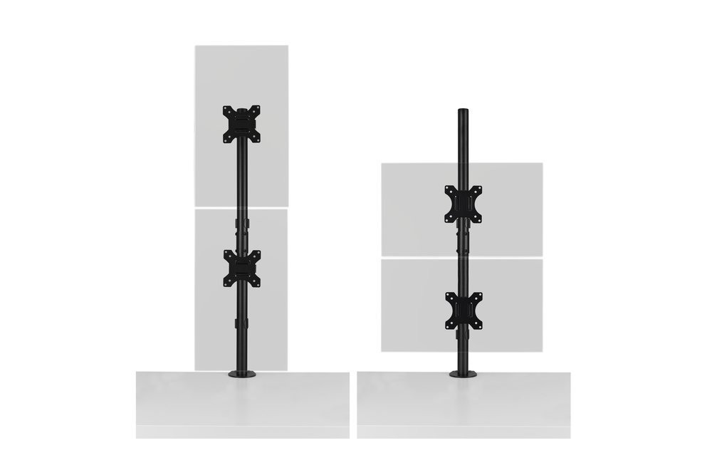 - Dual vertical mounting, ideal for top-to-bottom web browsing, control rooms, gaming, or anywhere desk space is limited. Holds two screens, each up to 32â (9kg/19.8lbs) in landscape orientation, 29â in portrait orientation