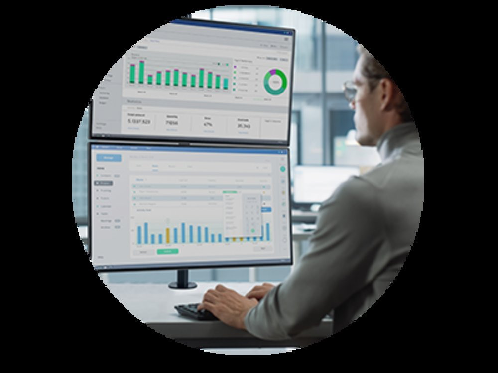 - Detachable VESA® 75/100 plates rotate ±180° for landscape or portrait orientation of each monitor