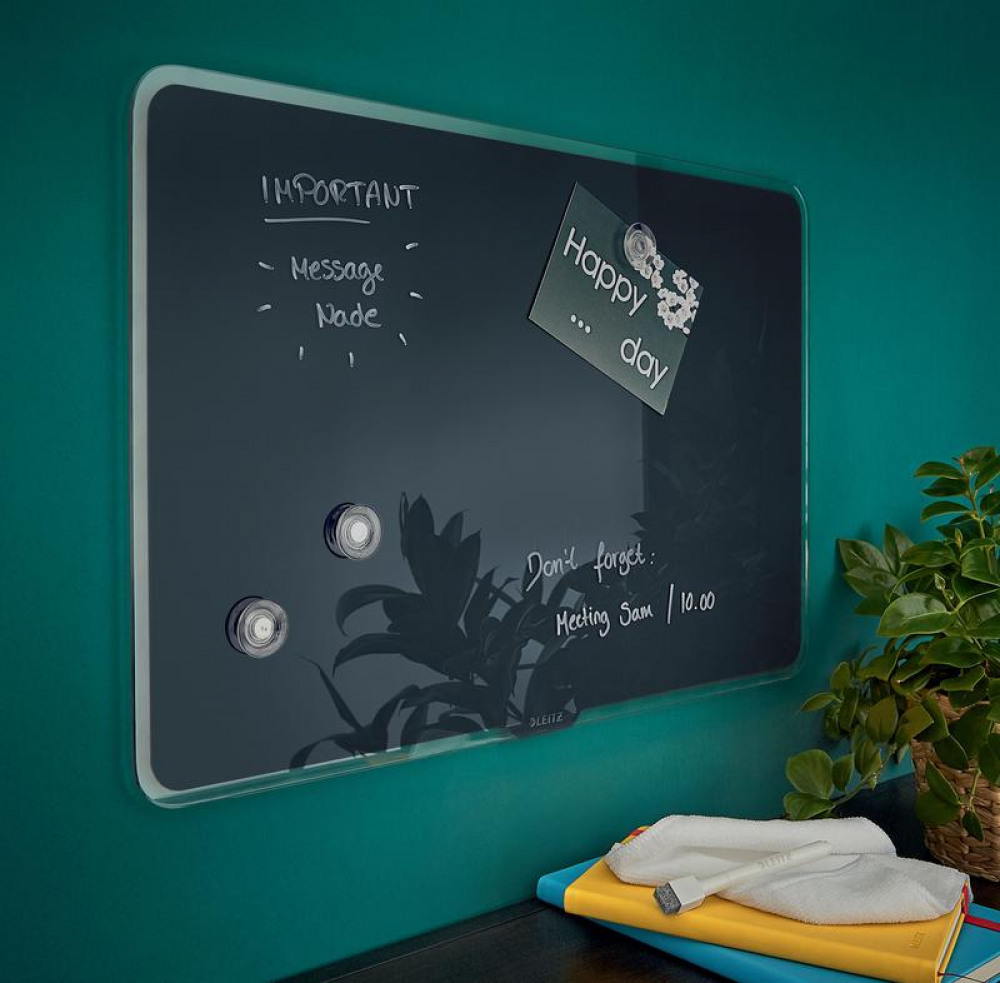 - Write or stick your notes directly onto the magnetic, glass whiteboard surface