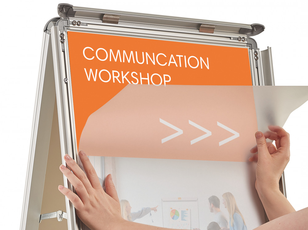 - Two snap frames are mounted back-to-back, simply lift up the aluminium frame edges to easily insert a new notice or poster, then snap shut