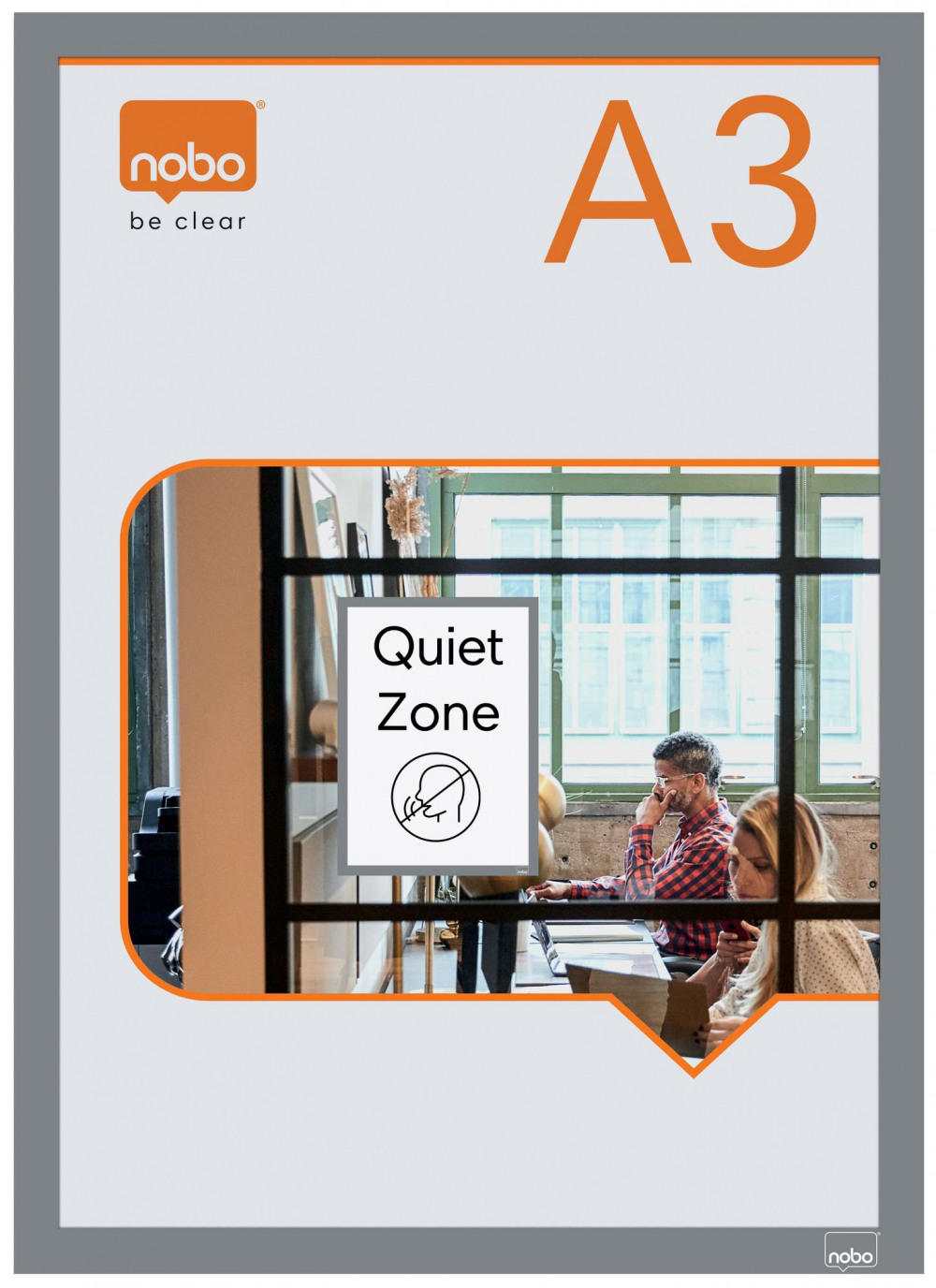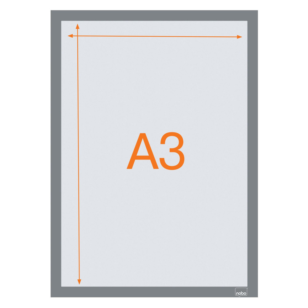 Nobo Self-adhesive Magnetic Poster Frame A3, Silver (Pack of 2)