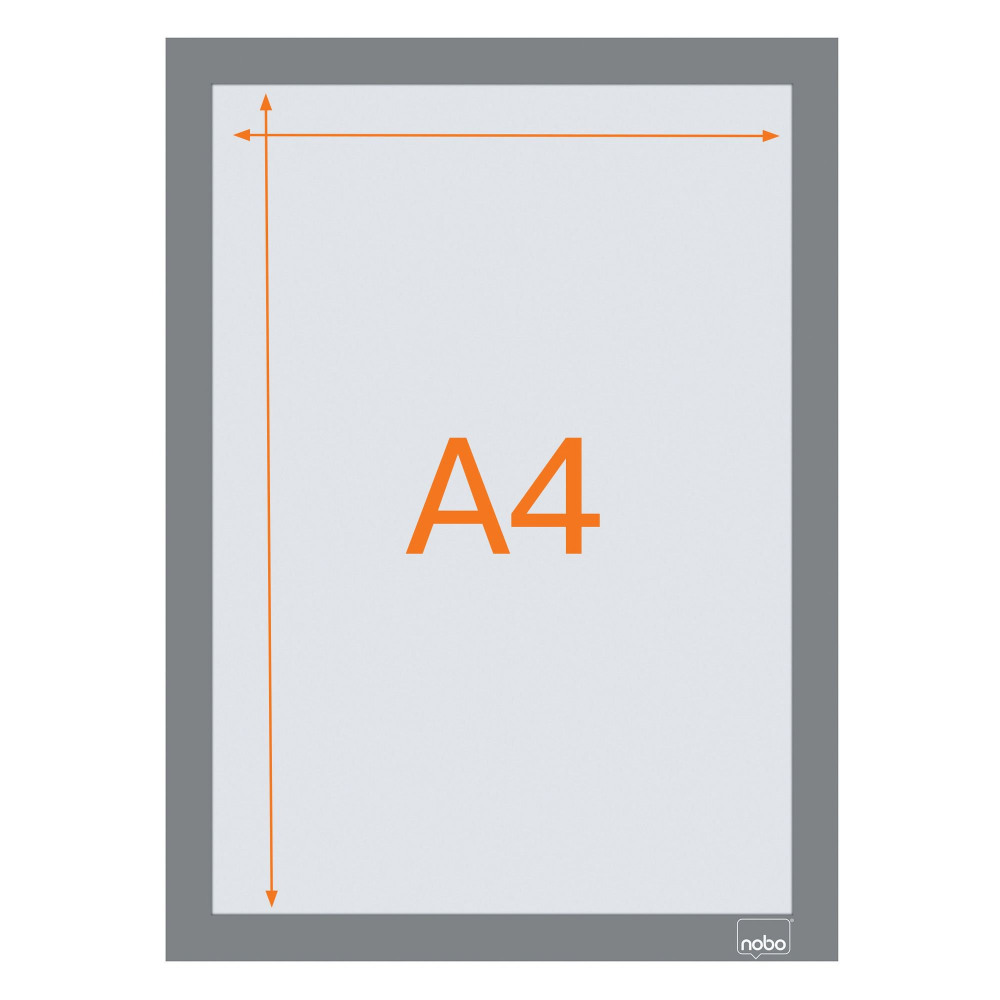 Nobo Self-adhesive Magnetic Poster Frame A4, Silver (Pack of 2)