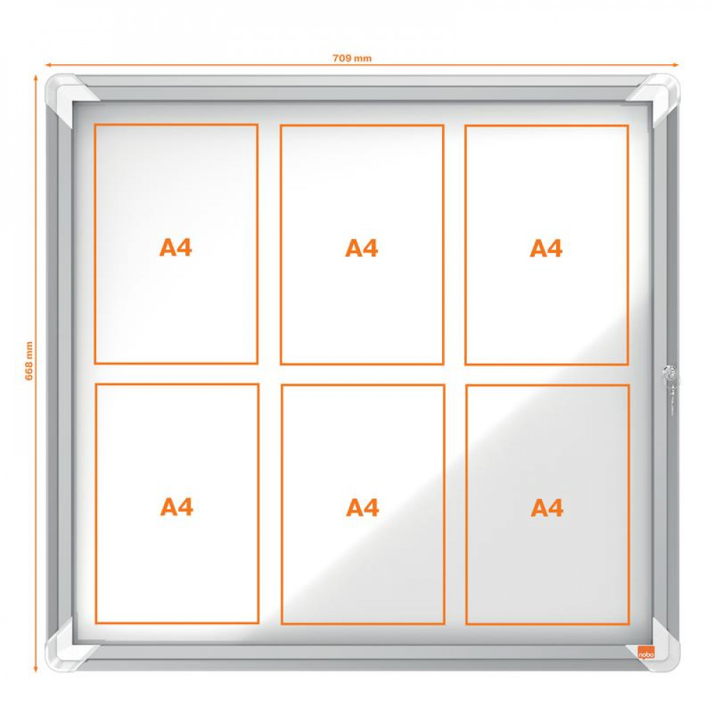Nobo Premium Plus Magnetic Lockable Notice Board 6xA4 White