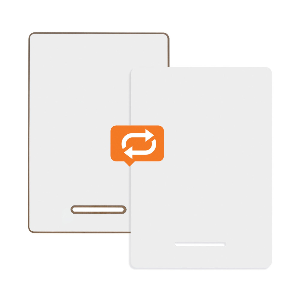 - Stylish curved wooden frame design and stand to use upright or flat on a desk