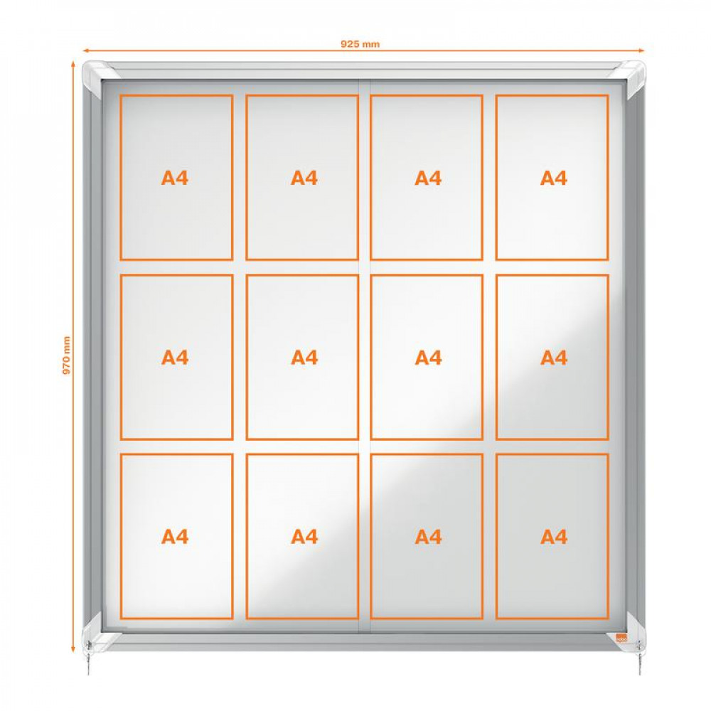 Nobo Premium Plus Magnetic Lockable Notice Board 12xA4 White
