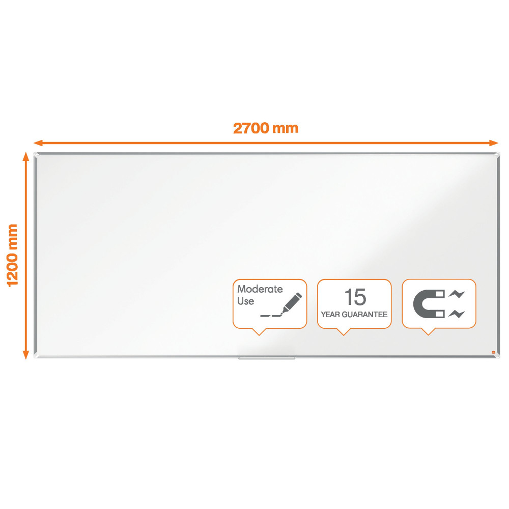 Nobo Premium Plus Steel Magnetic Whiteboard â 2700x1200mm, Aluminium Trim, EU Ecolabel Certified
