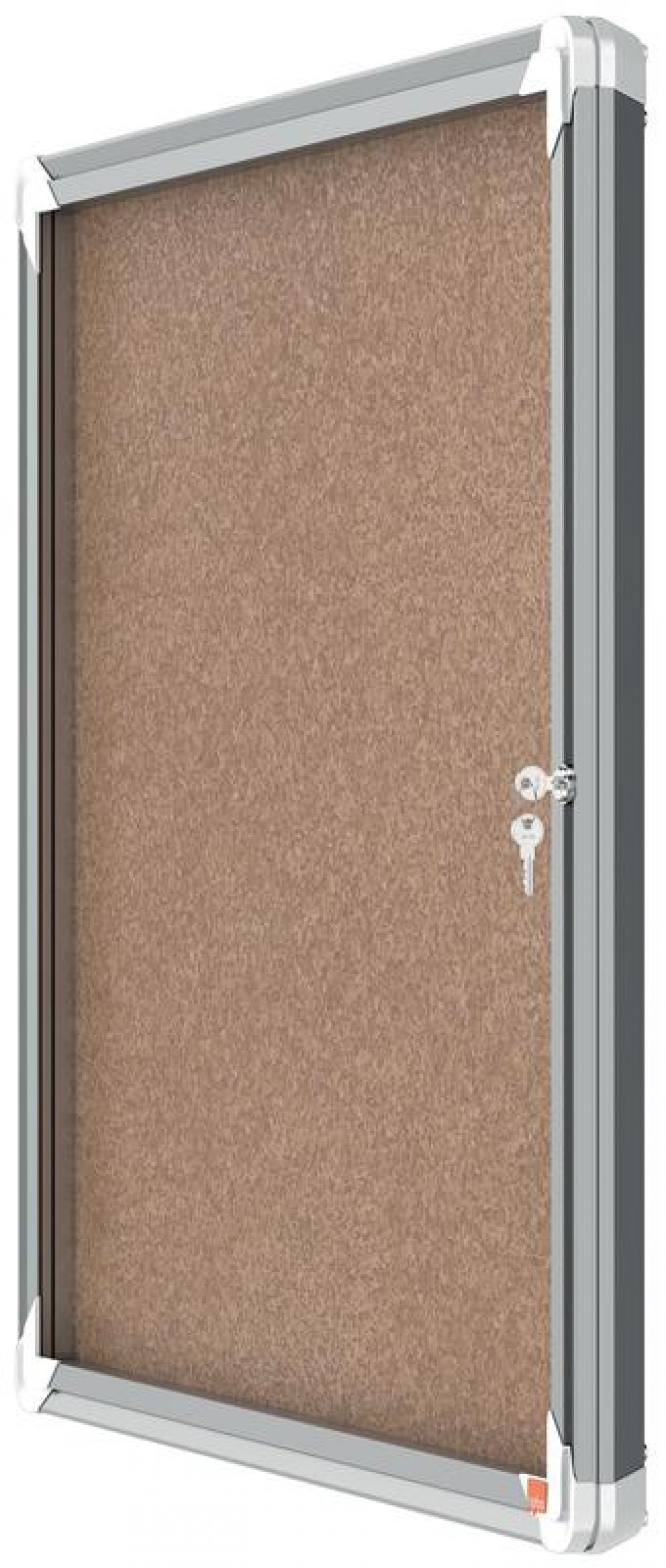 - Lockable notice board with a hinged safety glass door and side lock