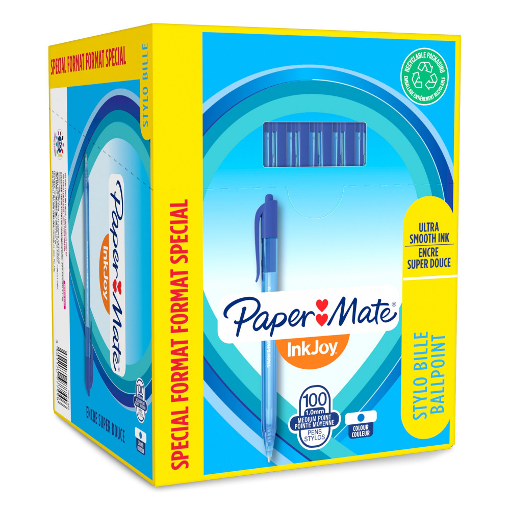 - Includes 100 blue ballpoint pens