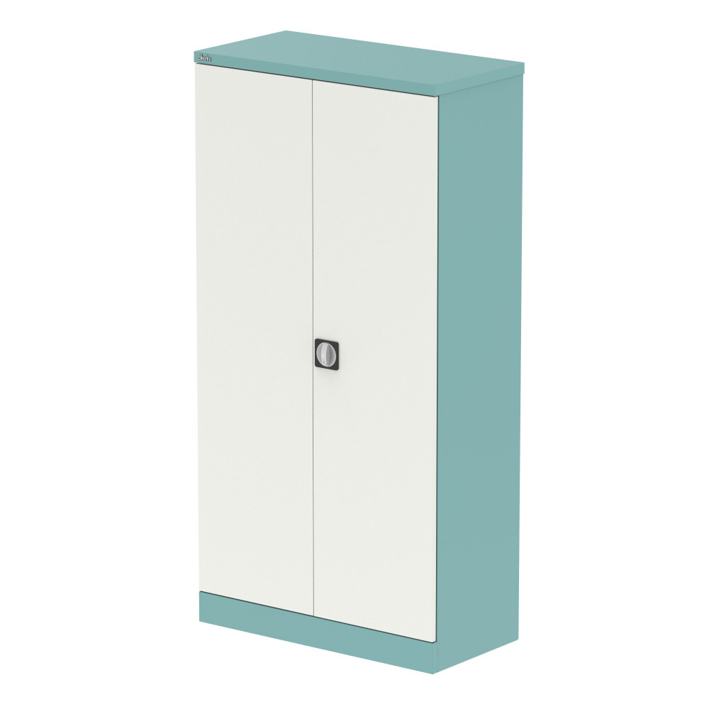 Dynamic Qube by Silverline 1850mm 2-Door Stationery Cupboard Pastel Turquoise and Satin White with Shelves - QS2129