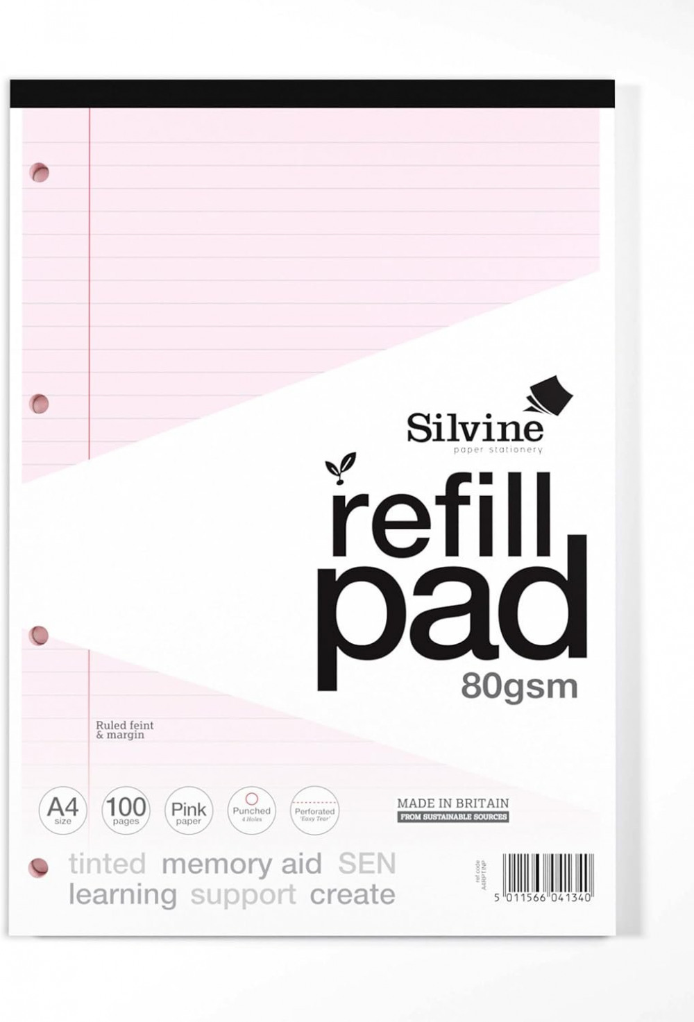 Silvine Tinted 100 Lined Pages Refill Pad 80gsm A4 Pink (Pack 6) - A4RPTINP