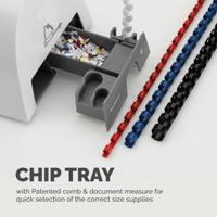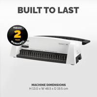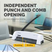 12 sheet punch capacity, 120 sheet binding capacity with a maximum comb size of 16mm