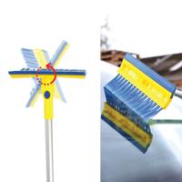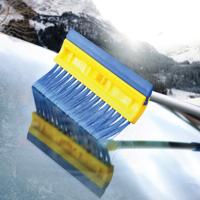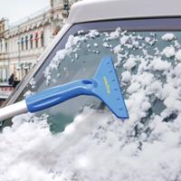 - Snow brush with rotating head can be locked in place, then folded back for storage