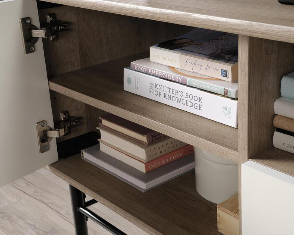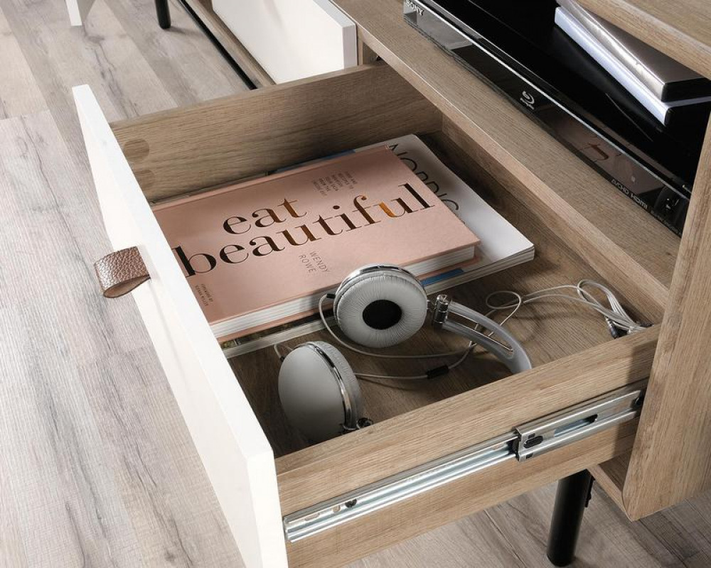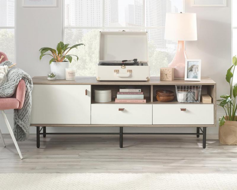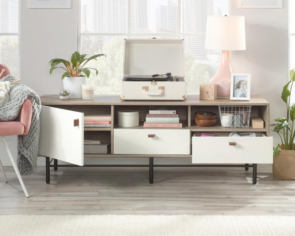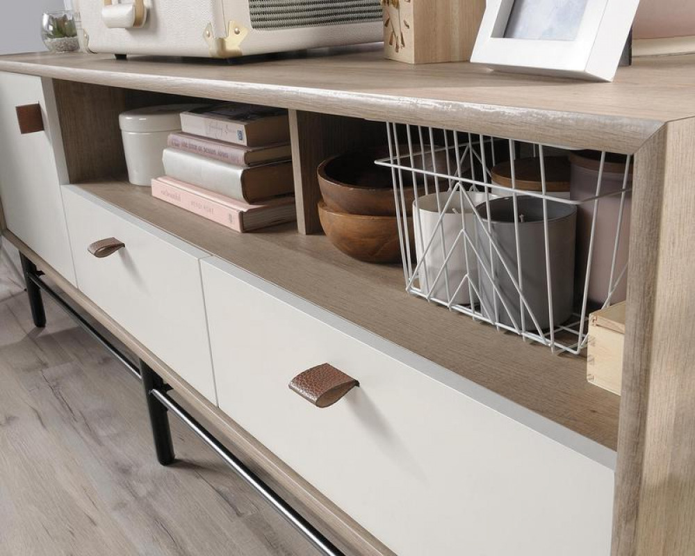 - Teknik Office Avon Leather TV Stand/Credenza Sky Oak White accents for TV up to 31kg
