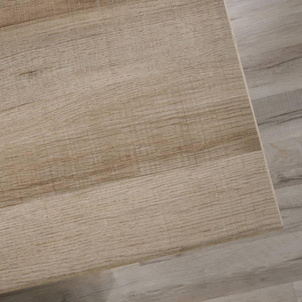 - Sky Oak Effect with white accents and a powder coated metal base