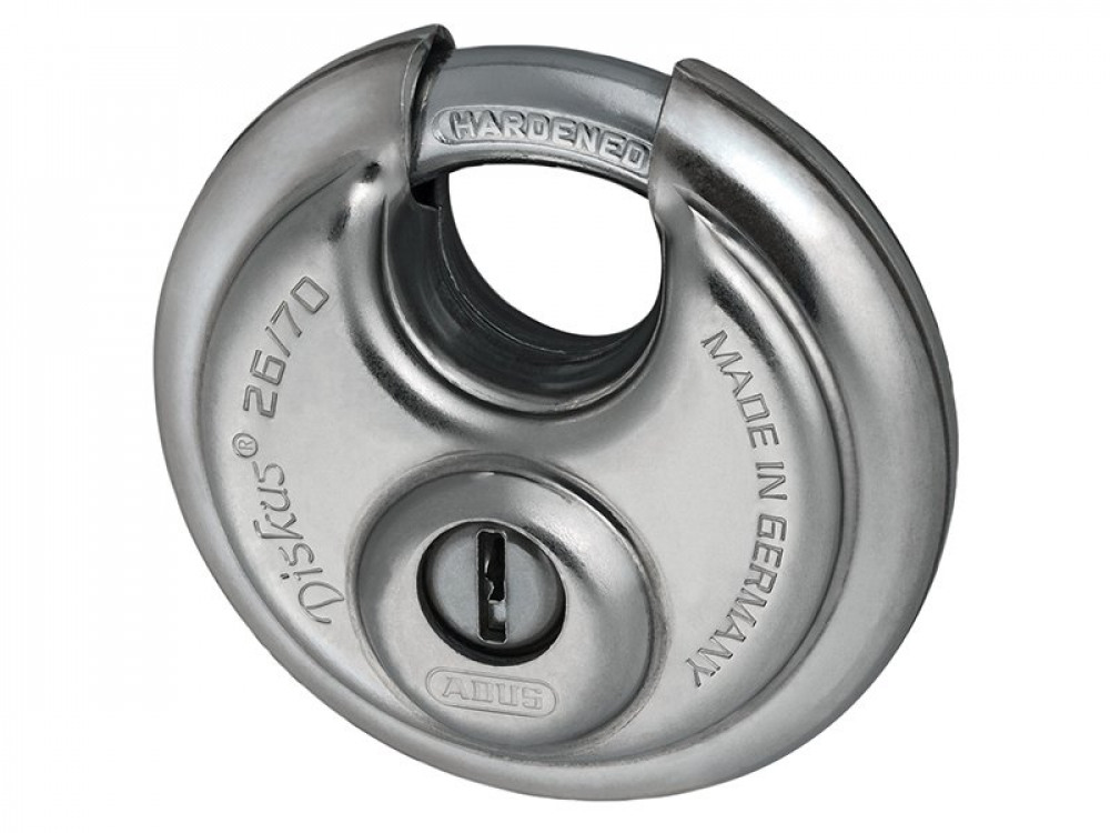 - This ABUS 26/70 Diskus® Padlock is supplied with 2 keys.
