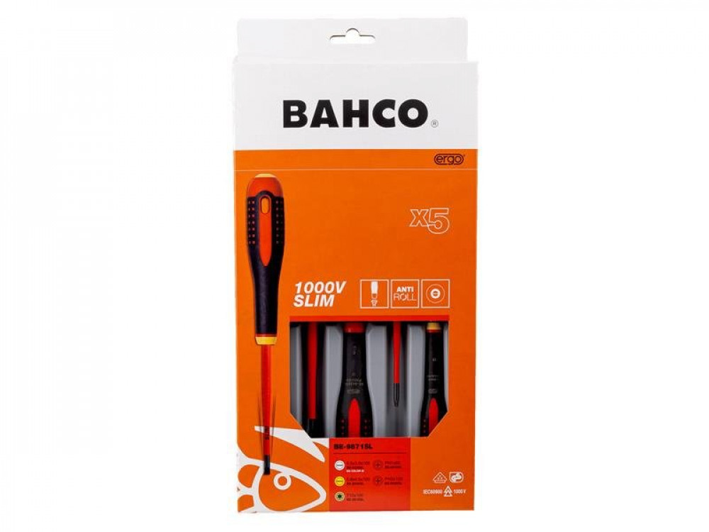 - Bahco BE-9871SL ERGOâ⢠Slim VDE Insulated Screwdriver Set, 5 Piece