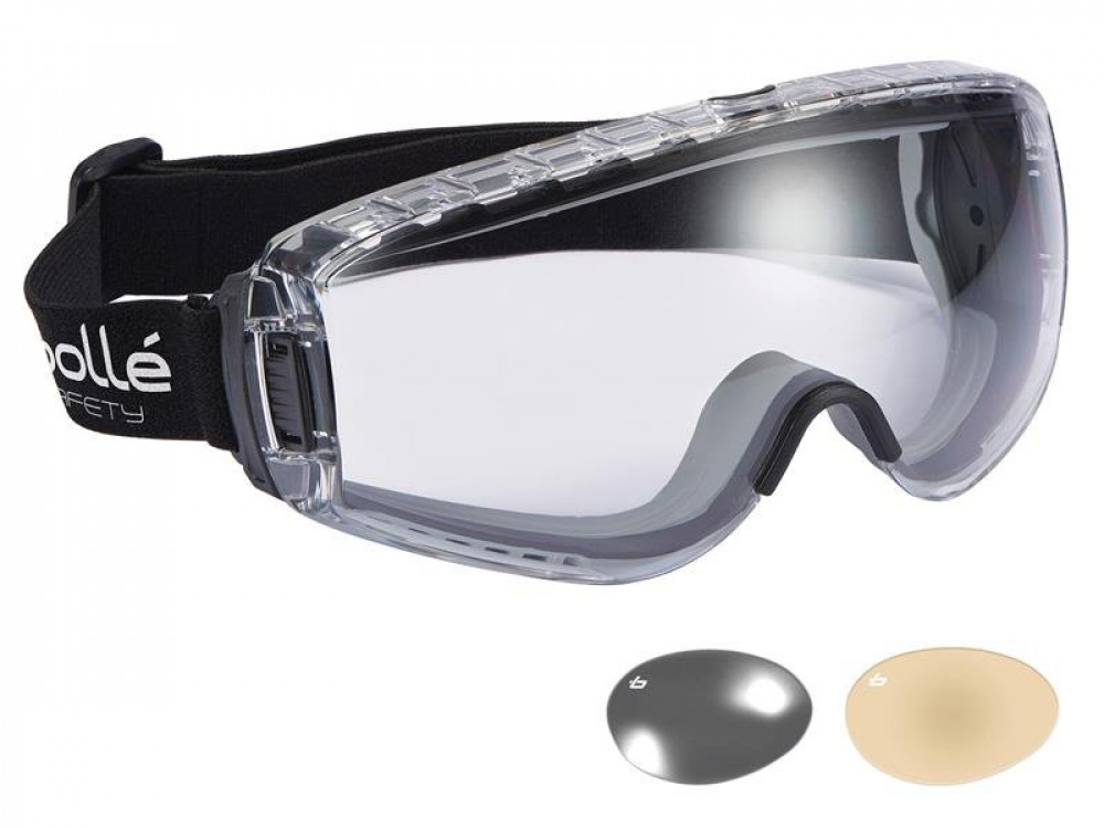 - These Bolle Pilot PLATINUM® Ventilated Safety Goggles have a clear lens. Approved for permanent wear and certified with perfect optical quality with anti-fog and anti-scratch coatings, 99.9% UVA/UVB protection.