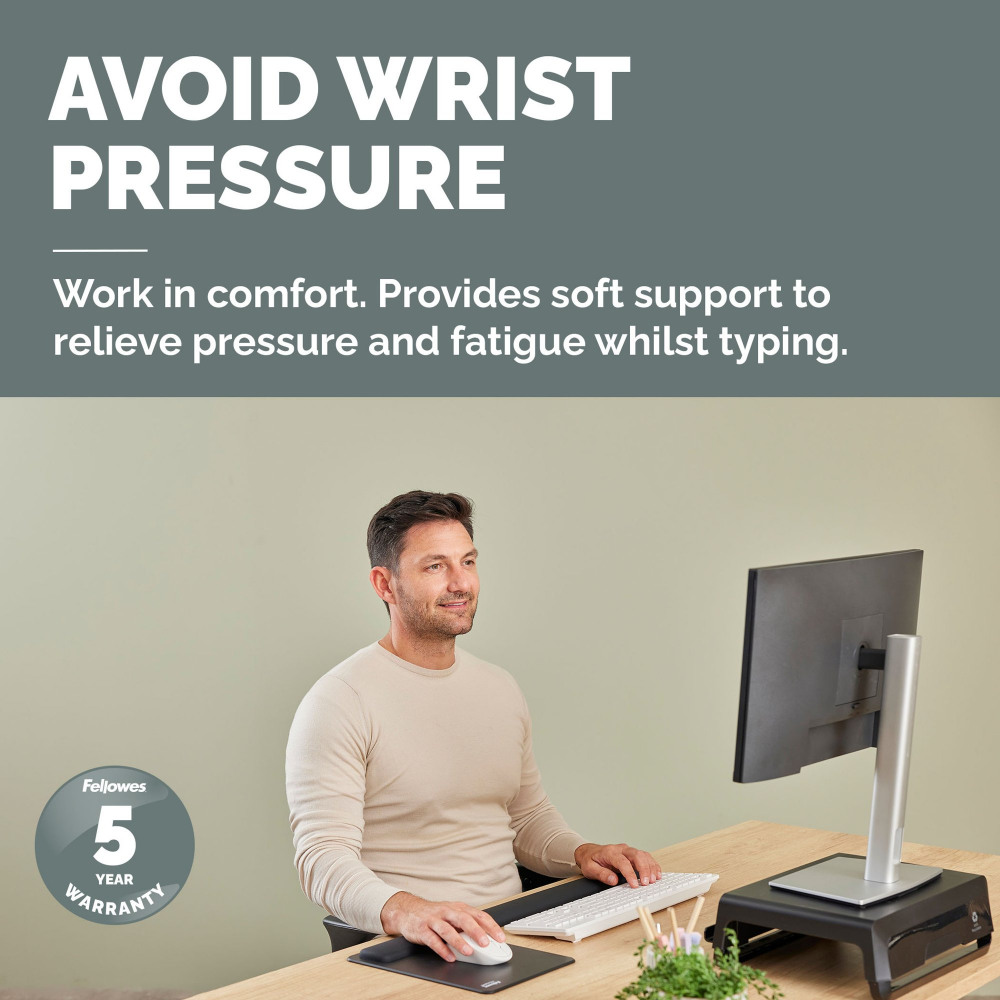 - RELIEVE PRESSURE AND FATIGUE - This Fellowes keyboard wrist rest conforms to your wrist for personalised comfort which helps relieve pressure and fatigue whilst typing