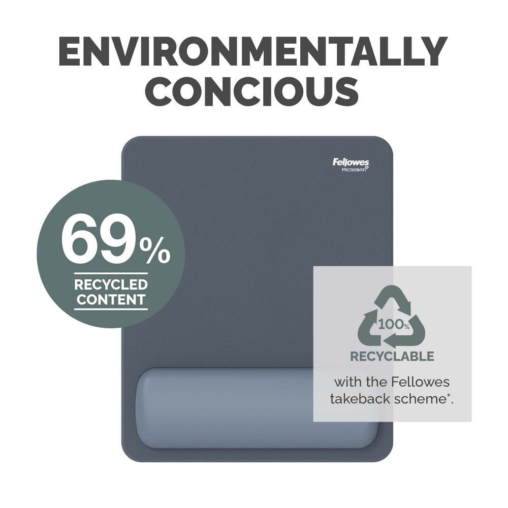 - MADE FROM 69% RECYCLED CONTENT - This Fellowes mouse mat is made from 69% post-consumer recycled content and is also 100% recyclable with Fellowes takeback scheme*
