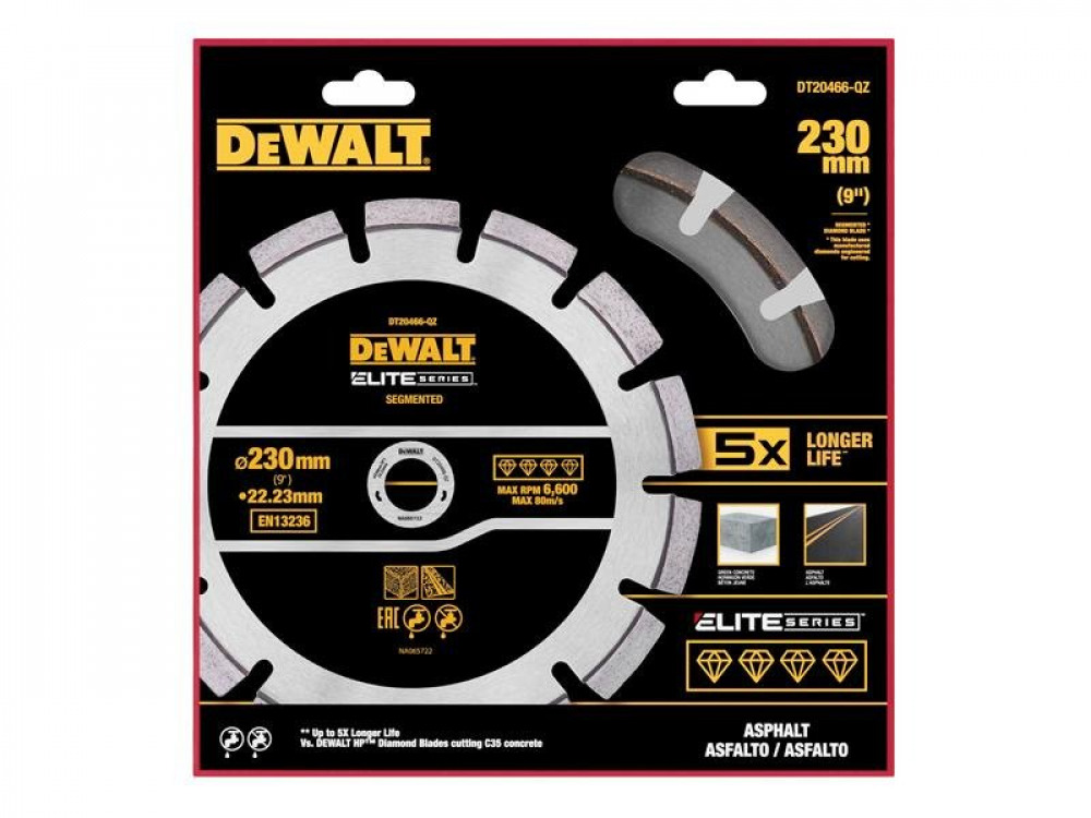 - DEWALT ELITE SERIESâ⢠Asphalt Diamond Segmented Wheel 230 x 22.23mm