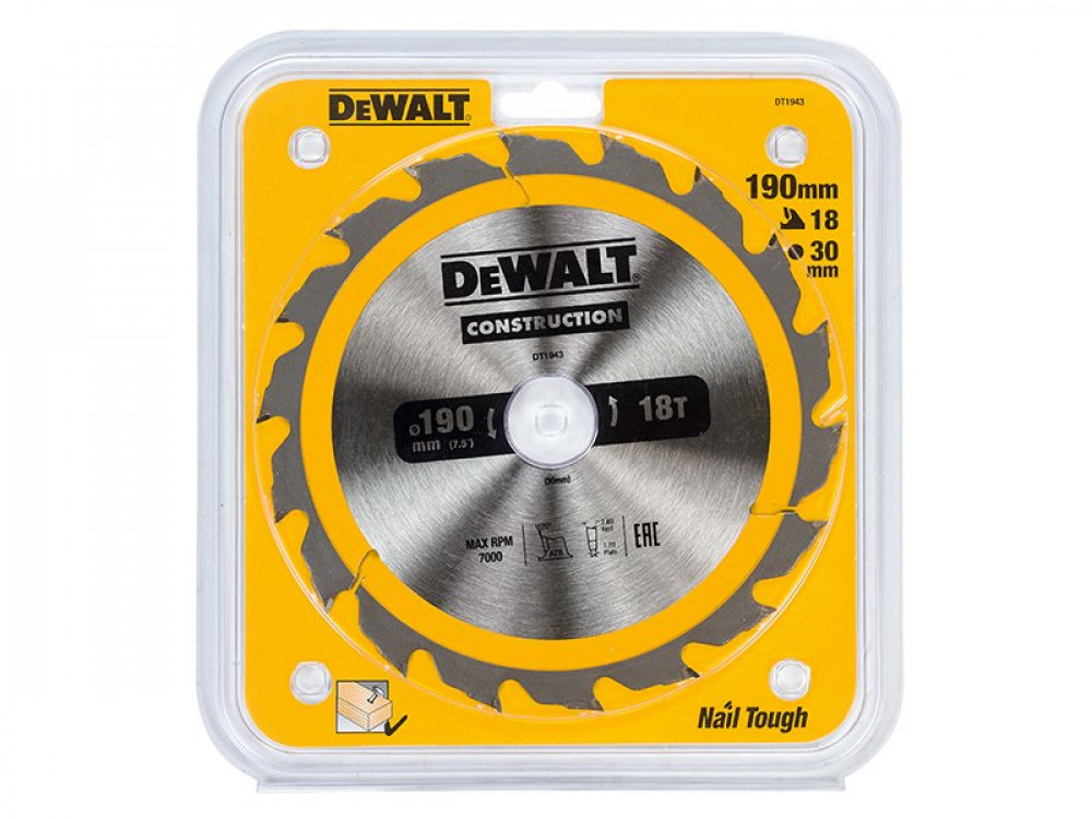 DEWALT Portable Construction Circular Saw Blade 190 x 30mm x 18T