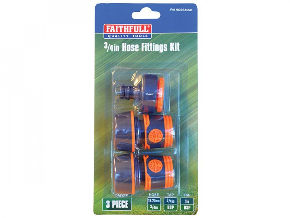 - Faithfull 3/4in Plastic Hose Fittings Kit, 3 Piece