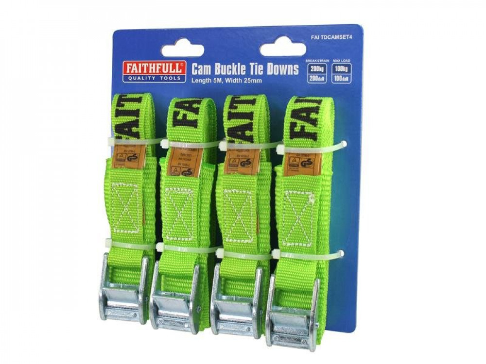- Faithfull Cam Buckle Tie-Downs 5m x 25mm, 4 Piece