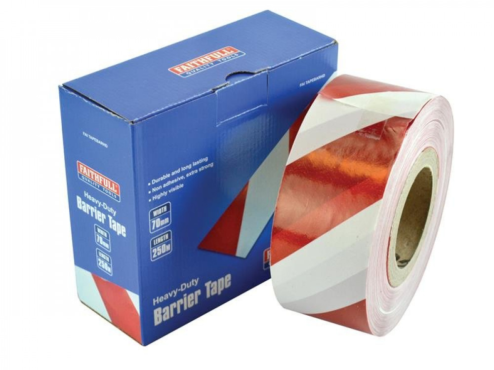 - Faithfull Heavy-Duty Barrier Tape Red & White 70mm x 250m