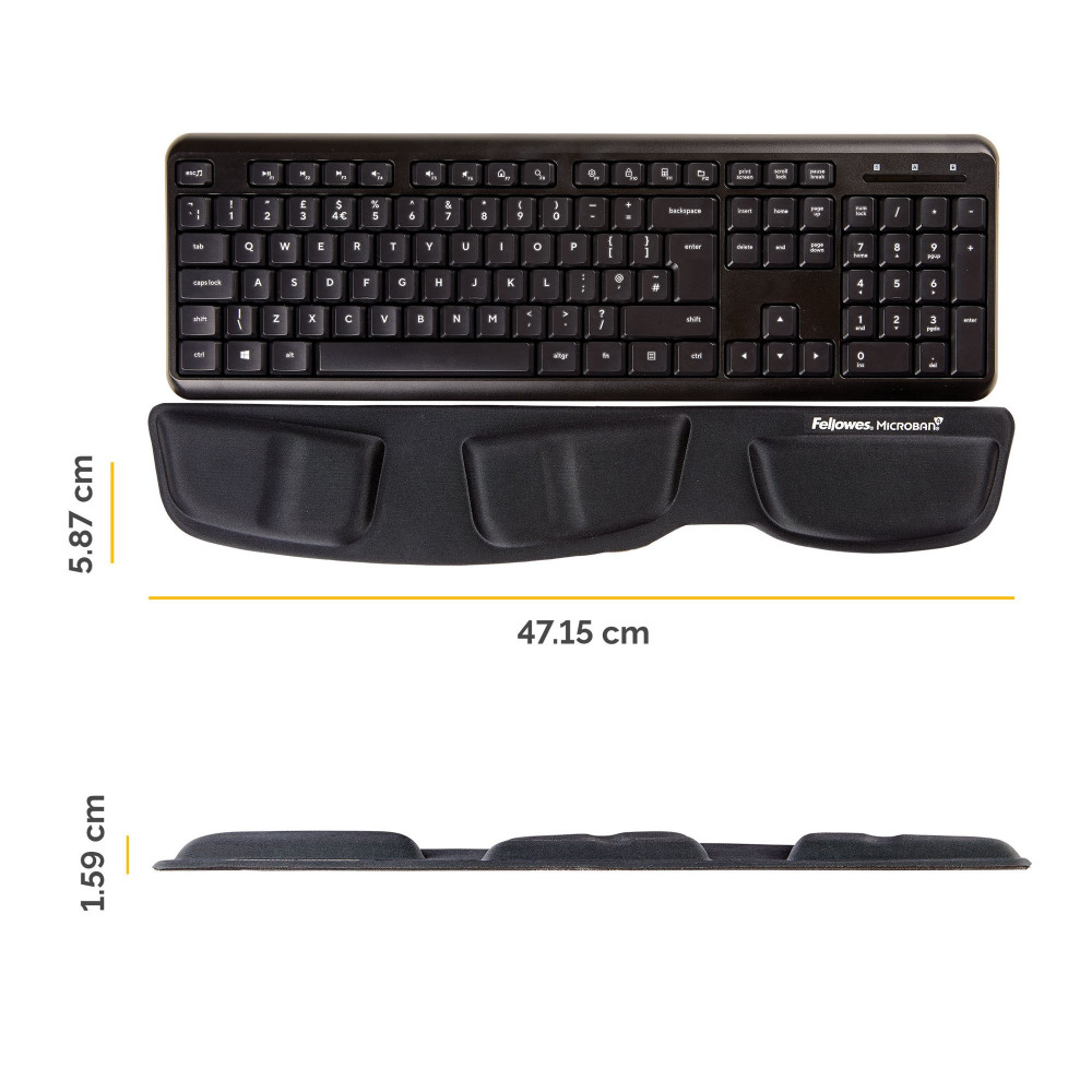- PRODUCT DIMENSIONS - The dimensions for the Fellowes Health-V keyboard wrist rest are: H15.9x W463.6 x D85.7mm
