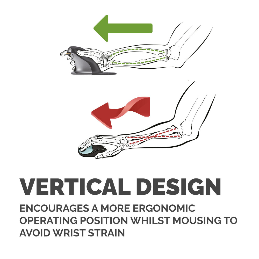 - AVOID WRIST STRAIN - The vertical design of this ergonomic mouse reduces muscle and wrist strain, encouraging you to work in an ergonomic position whilst mousing