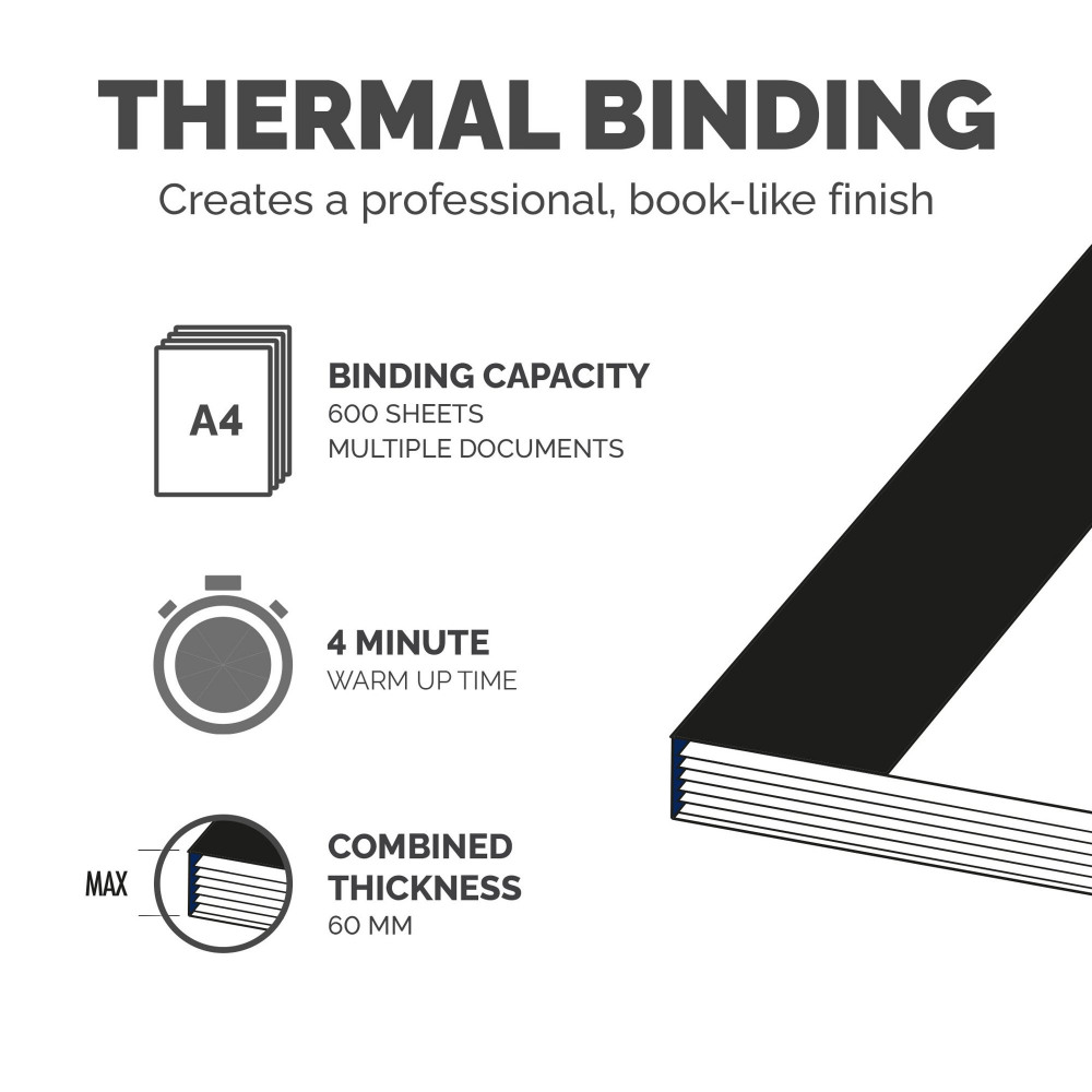 - ThermoSense automatically detects the thickness of documents to determine the correct binding cycle