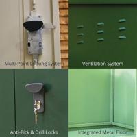 - Crafted from heavy-duty galvanised steel, the Harrogate Metal Garden Shed is built to withstand the elements. The integrated metal floor ensures complete weatherproofing, preventing rust and leaks. Designed with security in mind, it features an anti-pick locking system to deter theft. Integrated ventilation minimises condensation, helping to keep your belongings dry and in excellent condition.