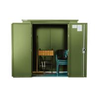 - Constructed from weatherproof galvanised steel with a 3-point locking system for maximum security