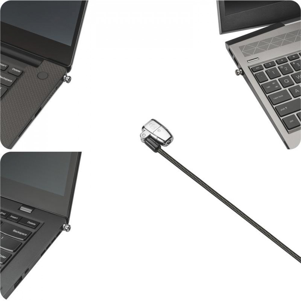 - One lock for any slot â fits standard T-bar, Nano or Wedge-Shaped laptop security slots, regardless of brand or generation