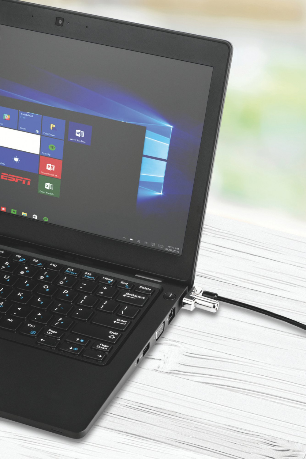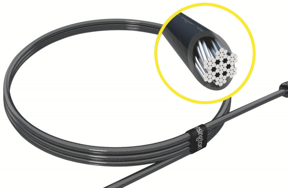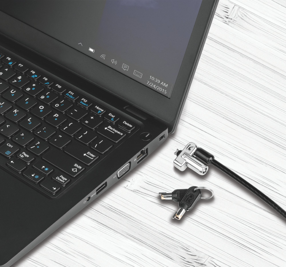 - Carbon steel cable is cut-resistant and anchors to desk, table or any fixed structure