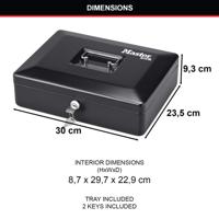 - Removable tray for notes and coins with 8 compartments