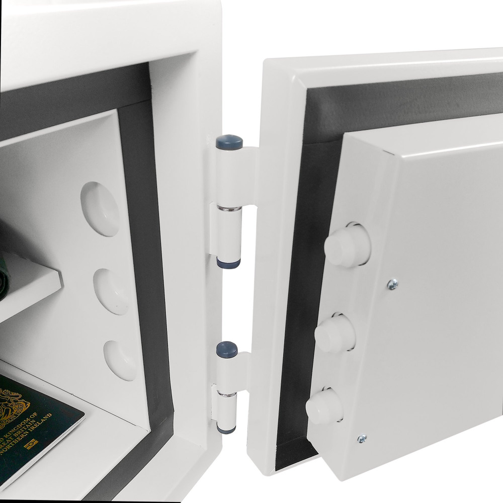 - CONSTRUCTION - Double wall construction with high grade concrete infill to provide both fire and burglary protection. Anti-drill plate protection, three way live locking bolts and fixed dog bolts, provide a door of massive strength and resistance to pry or forced attack.
